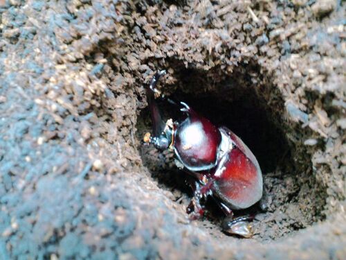 1.今朝、残り2匹が羽化し、これで全て成虫になった 今朝も早朝から、ベランダで猫たちが人工蛹室の周りに集まっていたので、昨日同様、覗いてみると、残りのカブトムシのサナギ3匹目(メス)と4匹目(オス)が羽化していた。 (1)3匹目(メス)は、…